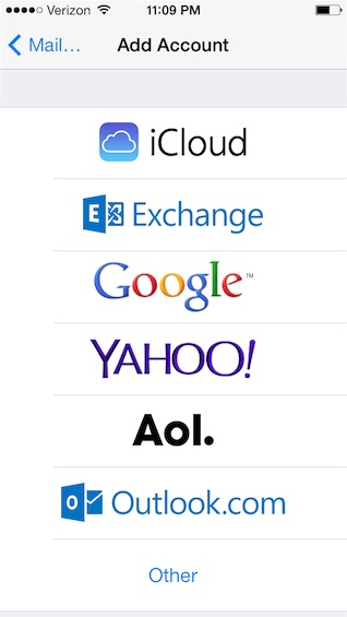 Note: Before iOS 6, the "IMAP" and "POP" options were displayed after clicking Other in the previous step. In iOS6, there new screens before you select the mail connection type of POP or IMAP. These instructions are updated ones for iOS 6.x.