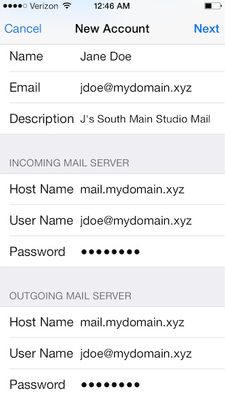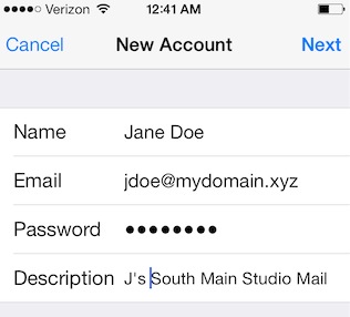 6b. For "Email" (Address in older iOS), enter your email address - e.g. jdoe@mydomain.xyz