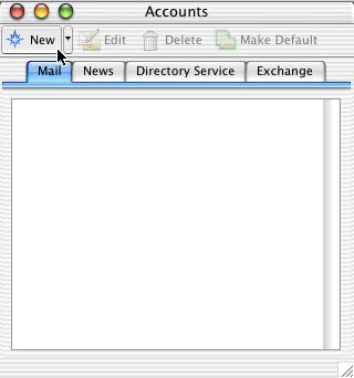 3. The Accounts window will open. Select the Mail tab and click the New button.