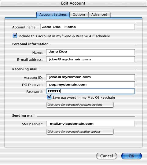 Entourage Mac OSX Setup