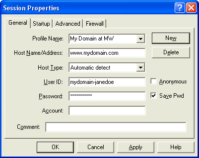4. Beside the "Profile Name" label, enter a name for this FTP site. (e.g. My Domain).