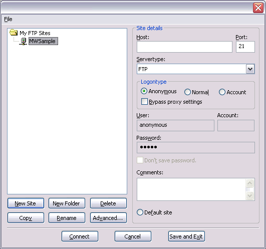 4. Rename the 'New FTP Site' under 'My FTP Sites'.