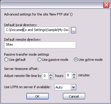 11. Optional: Add the folder path to your local copy of your web site in the 'Default local directory' field.
