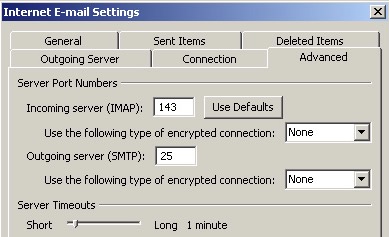 8. Click the More Settings button to display the Internet E-mail Settings dialog.