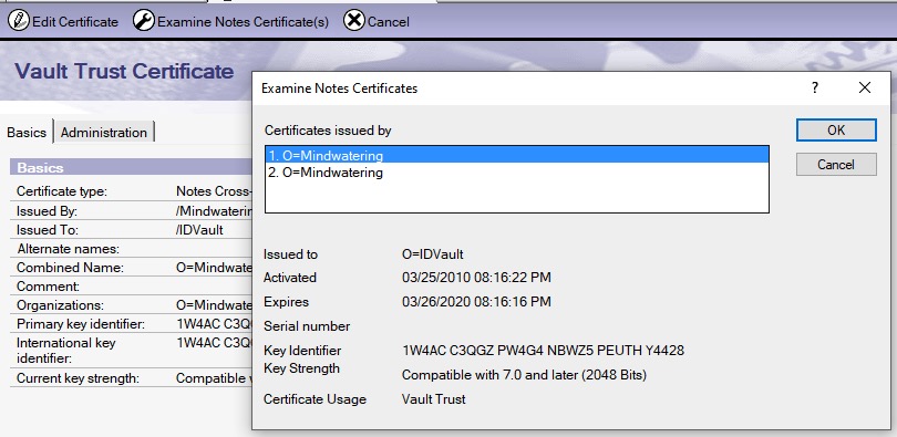 However in checking certlog.nsf, we see that the ID vault has an expired date.
