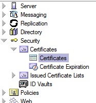Domino Administrator Client --> Open the administrative Domino server --> Switch to the Configuration tab --> Open the Security twistie --> Open the Certificates sub twistie --> Open the Certificates view.
