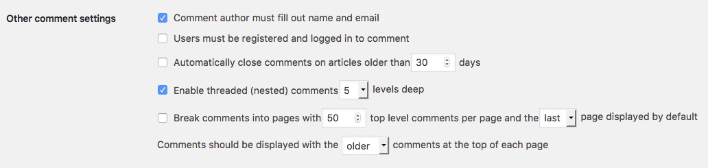 - Enable threaded (nested) comments 5 levels deep