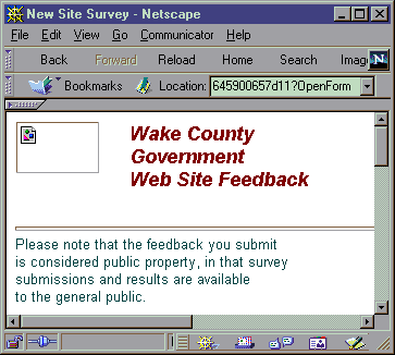 The following image shows what happens when the user's cursor runs over the feedback icon in the Wake County Home Page. A javascript rollover causes one effect, but the text in the box is caused by the Alt tag.